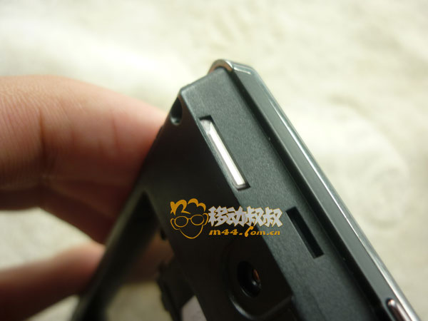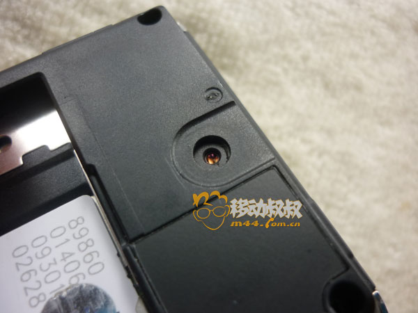 Sul lato destro troviamo il foro (direi più una feritoia) dell'altoparlante.