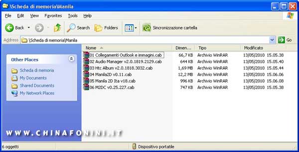 La cosa, non è poi così semplice: ho personalmente testato almeno venti release e relative patch, ed il risultato è sempre stato un fallimento clamoroso o, perlomeno, dopo la partenza, il touch flo rimaneva funzionante solo fino al riavvio del dispositivo, poi non ne voleva più sapere. Di inserirla nel coking delle ROM neanche a parlarne. Alla fine, grazie a un forum cinese e alla mia testardaggine, sono finalmente riuscito a risolvere tutti i problemi. Se volete provare... Per terminali con risoluzione 240x320 e con memoria non inferiore a 128-256MB di RAM seguite queste istruzioni: Scaricate questo archivio: http://netload.in/dateiCQ38M8xl9G/manila_2.rar.htm Collegate il telefono al PC, avviate "ActiveSync" e aprite esplora. Andate nella vostra memory card, create una cartella "manila" e copiateci dentro i sei archivi .cab, così come nell'immagine