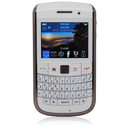 Chinafonini dual-sim Full Touch: In questo settore, le novità riguardano quasi esclusivamente i cloni iphone, anche se finalmente dotati di schermo capacitivo, si va dal Iphone K628 al PinPhone 2 e i prezzi variano, a seconda dei modelli, dai 110 ai 150 dollari. Tra gli altri modelli, il più originale sembra il G1, un dual-sim, dual-standby con un estetica diversa dal solito. Schermo full touch da 3.0 pollici e gravity sensor. Il prezzo è di circa 95 dollari. ![]() G1 Tastiera qwerty: In questa nicchia di mercato, spopolano i cloni Blackberry, il più nuovo dei quali è il T9650, un 2.2 pollici di schermo, con supporto java e sistema operativo proprietario dal costo decisamente contenuto di circa 70 dollari.