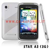 Partiamo dai modelli dotati del nuovo chipset Mediatek MTK 6573, dotato di tecnologia Dual Core con una velocità di clock di 650 MHz + 400 MHz. Presso il rivenditore Lightake troviamo i seguenti modelli interessanti perchè tutti dotati di supporto alla telefonia mobile di terza generazione (3G) che dovrebbero (il condizionale è d'obbligo) quindi funzionare con le sim UMTS italiane.Il W7272 è dotato di un display touch screen di tipo capacitivo da 3,5 pollici di dimensioni ed è corredato da Android nella versione 2.3.4, sensibilmente migliorata rispetto alla 2.2. Il dispositivo è dotato di antenna GPS integrata e di connettività WiFi. Si fanno apprezzare la presenza di connettori standard come quello da 3,5 mm per l'audio, quello microUSB per i dati e addirittura quello compatibile con i caricabatterie della Nokia. La RAM di 256 MB è sufficiente a far girare agevolmente Android, ma può diventare scarsa se siete abituati a utilizzare molte applicazioni contemporaneamente. Lo Star A3 dispone di un display di ben 4 pollici di diagonale, con tecnologia touch screen di tipo capacitiva. Anche qui troviamo GPS e WiFi ed i connettori standard per audio e dati. La RAM è di ben 512 MB, che promette prestazioni sempre scattanti. La versione di Android installata è la 2.3. Il peso, nonostante le dimensioni abbondanti, è stato contenuto in appena 131 grammi.
