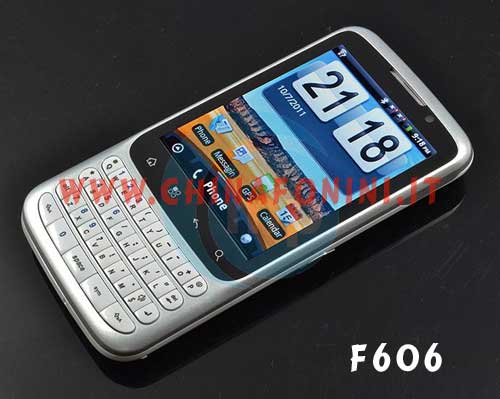 Passando ai modelli GSM (privi di supporto UMTS) non posso non segnalare l'A7272+ che ho da poco provato e di cui invito a leggere la recensione a questa pagina: http://www.chinafonini.it/a7272+_1.htmlInfine, voglio farvi conoscere un modello particolare, che non è 3G, non ha uno schermo gigantesco, ma ha una cosa che manca a praticamente tutti i dispositivi Android: una tastiera! Sto parlando del modello F606, trovato presso Lightake, dotato di chipset MTK 6516, schermo da 2,8 pollici con touch di tipo resistivo, 256 MB di RAM, sistema operativo Android 2.2 ed una bellissima tastiera estesa di tipo QWERTY posta al di sotto del display. Personalmente, trovo questo modello tra i più interessanti perchè detesto scrivere messaggi o altro testo sulla tastiera virtuale dei touch screen. Se dovete fare un regalo a qualcuno che apprezza Android ma non digerisce il touch screen, questo è l'articolo che fa per voi.