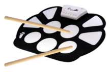 Drum-padE passiamo ad una idea regalo che potrebbe piacere agli appassionati di musica e farebbe probabilmente la gioia di molti bambini (molto meno quella dei loro genitori): un set di percussioni elettroniche racchiuso in un semplice tappetino avvolgibile. Il drum kit in questione può essere alimentato con due batterie mini-stilo (AAA) oppure tramite la porta USB integrata ed è completo di bacchette e pedale. E' possibile addirittura registrare ciò che si suona e sono già presenti dei samples preregistrati. Collegando il Drum-pad ad un lettore MP3 o ad un PC è possibile inoltre suonare "sopra" ad un brano musicale, funzione utile ai fini didattici. Il prezzo? Anche questo costa meno di 24 euro (neanche a farlo apposta), almeno presso il venditore Chinavasion sul cui sito l'ho trovato. https://www.chinavasion.com/...Portable_Drum_Pad...