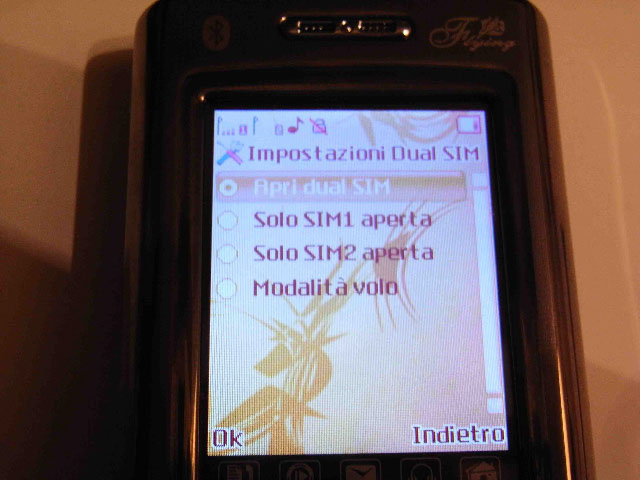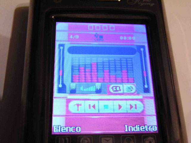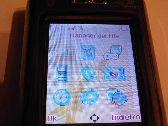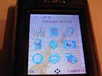 C'è la possibilità di settare quattro temi preimpostati, mentre l'immagine di sfondo può essere impostata a partire dalla cartella delle foto nella scheda di memoria.Discorso simile si ha con la personalizzazione delle suonerie, che sorprendono per la vasta scelta: sono precaricate 25 suonerie, tra MIDI e non, con l'ulteriore possibilità di altre cinque da scegliere nei files audio. Generalmente l'audio dei brani mp3 scaricati sulla scheda di memoria è più potente. La seconda sorpresa è che il piccolo schermo lcd (che è piccolo per la categoria chinafonini, ma abbastanza normale rispetto a molti terminali occidentali) è effettivamente dotato di touchscreen. La sua definizione a 260.000 pixel si nota fin da subito piacevolmente. Nella schermata principale si vedono le diciture delle sim presenti, nel mio caso una vodafone, e l'indicazione dello slot sim 2 libero.